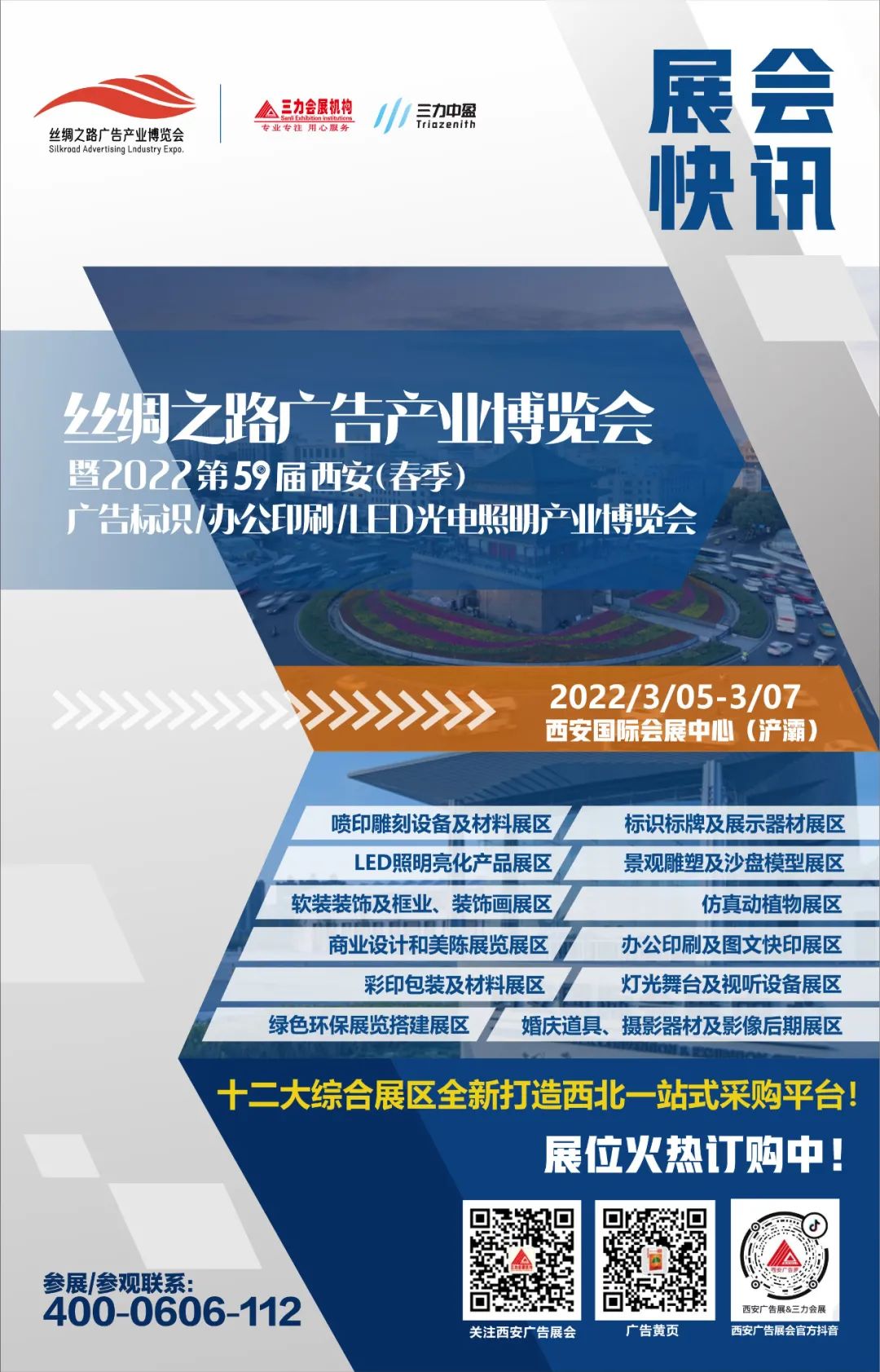 为进一步提升展会专业能力、运营能力、服务能力,2022西安三力会展将与各商协会继续深入合作,强强联合,专注、全力打造第五十九届西安广告标识/办公印刷/LED光电照明产业博览会。未来,西安广告展将以更专业、更权威、更高效的全新面貌,切实发挥行业担当作用,组委会也将不断深耕西北地区广告市场,整合全产业链资源,集聚优质品牌与供应商,完善展览展示、商贸对接、趋势发布、渠道拓展、宣传推广等展会功能,为广大参展、参观商的发展提供助力,为西北地区广告产业的腾飞输入源源不断的力量!