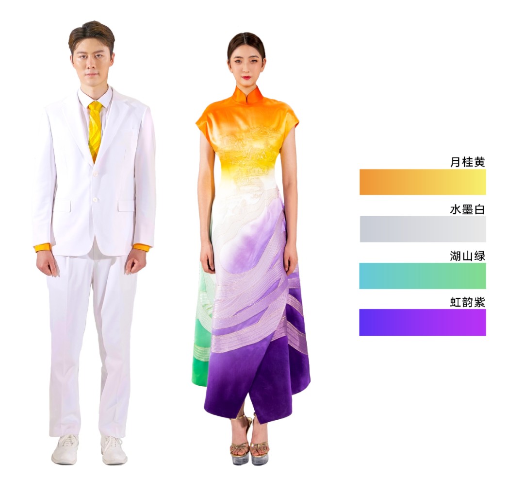 设计之初,团队做了大量的调研——如何通过服饰来宣传杭州的精致以及浙江的大气。“得到最多的结果,就是西湖。”吴海燕说,在调研中,团队发现杭州市民非常希望通过亚运的设计,传达出城市的理念。