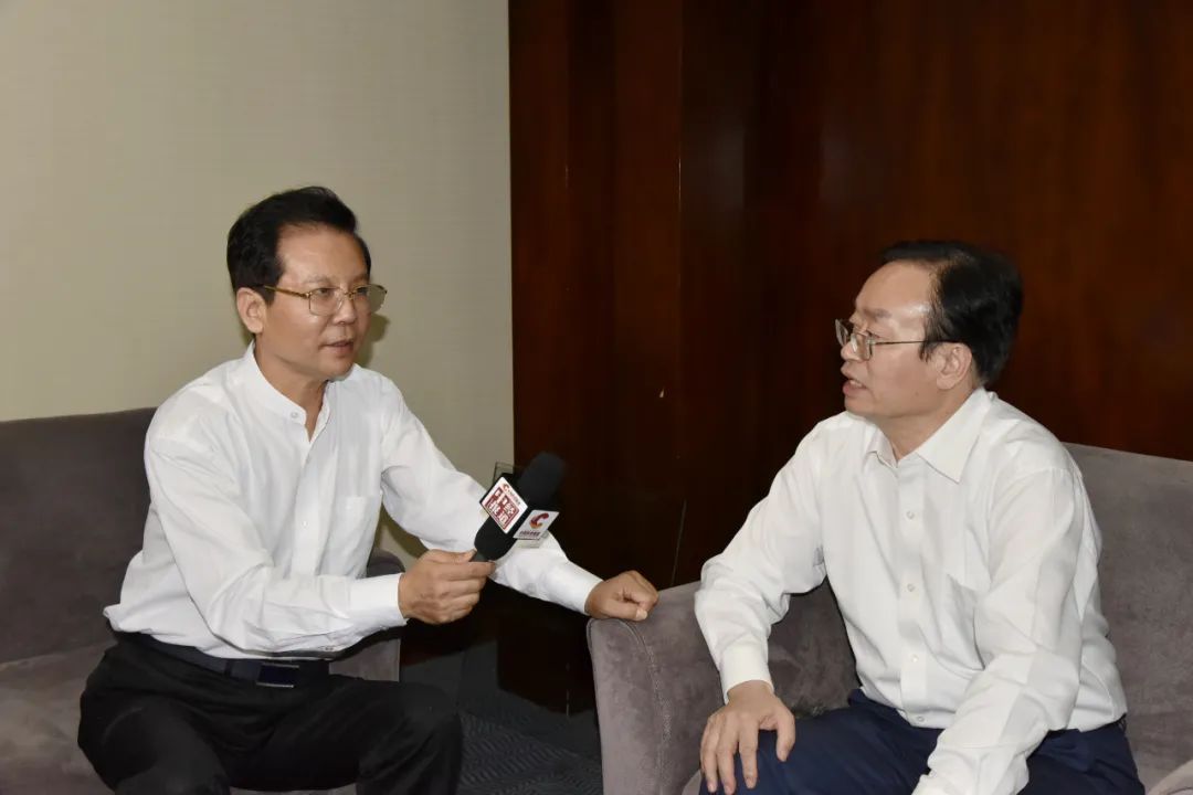 峰会开始前,商会党委书记、创会秘书长徐维新等领导嘉宾在媒体区接受中国经济报道记者采访。