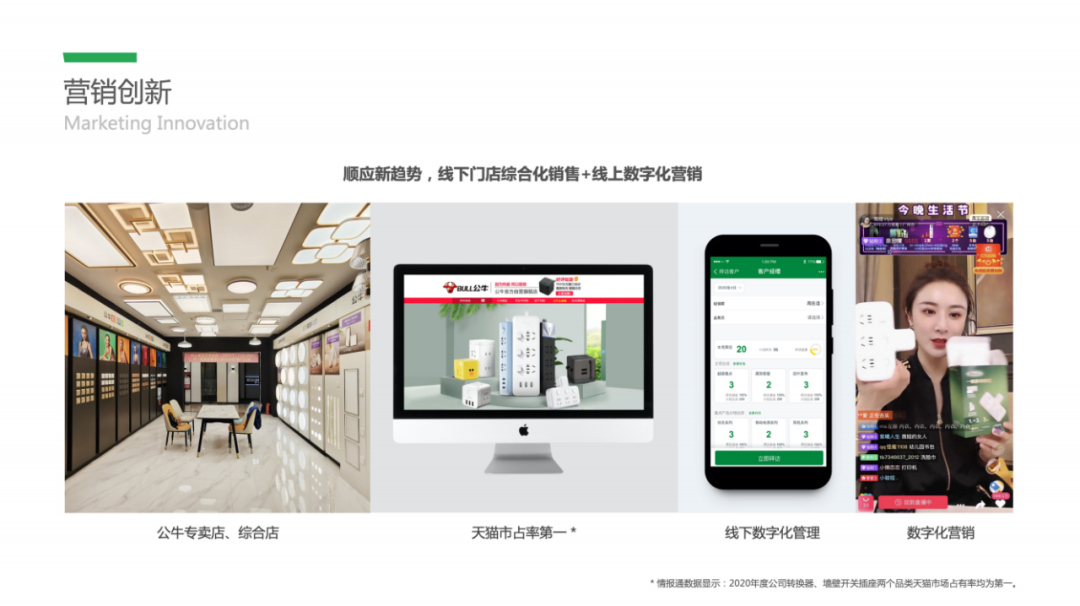 从2020年起,为开拓更多线上用户,公牛积极探索多样化的营销方式,开展数字化品牌营销,为渠道及店铺赋能,通过电商达人直播+线上内容种草引爆品牌声量。