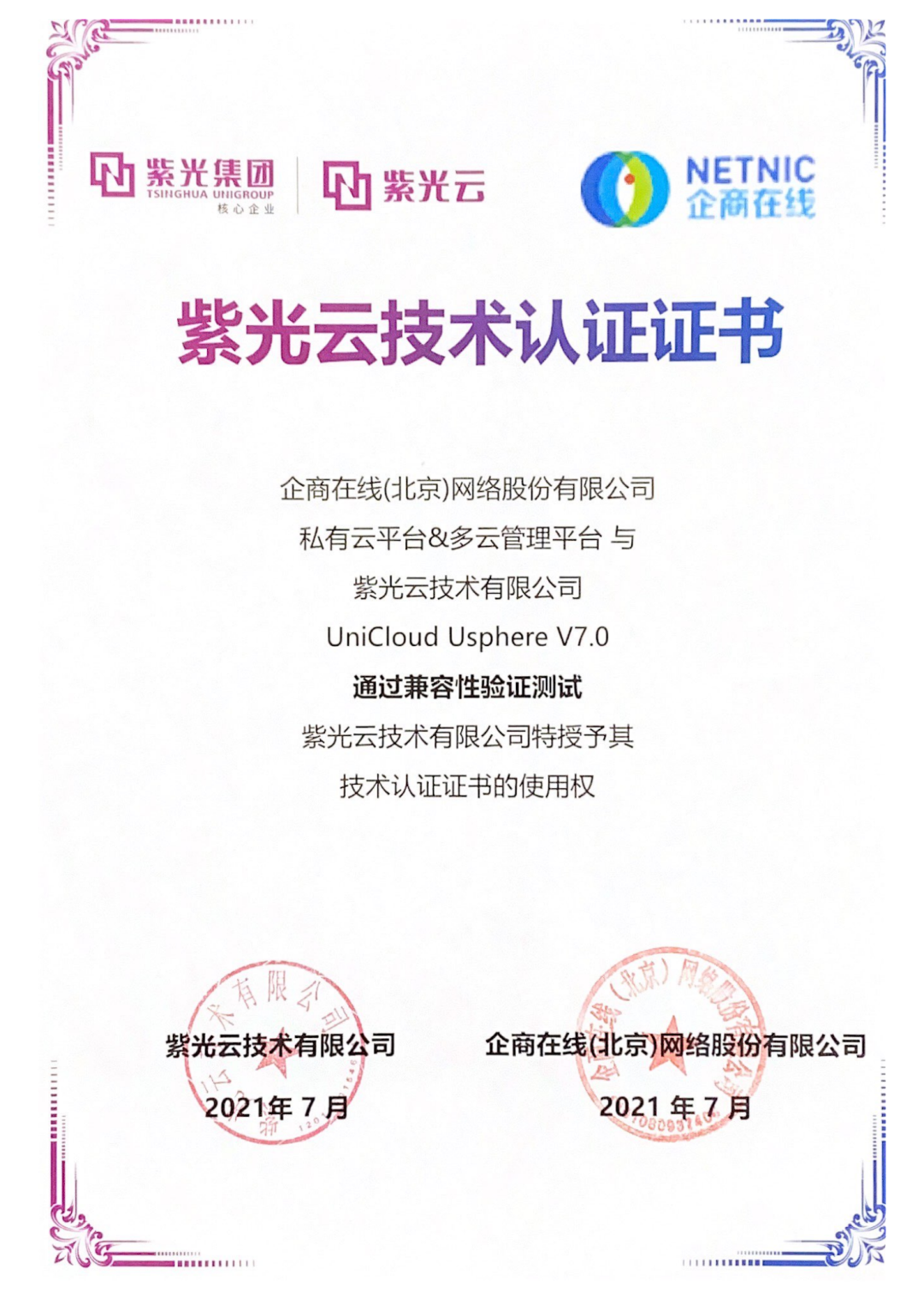 企商在线私有云及多云管理平台完成紫光信创认证 全力推进国产化进程