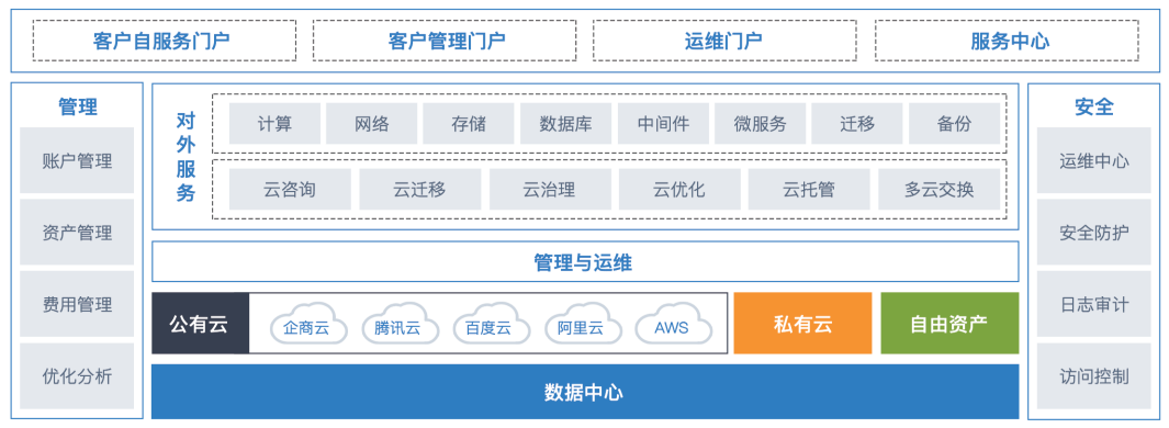 企商在线的云平台建设,依托于早期的资源优势和对客户需求的充分理解。在十年前自建数据中心时,便提出“托管云”的服务理念,为企业构建托管的私有云服务,以解决客户数据安全及运维难题。随着信息化的不断发展,企商在线相继推出私有云平台及多云管理平台,并经过不断迭代,打造出可为企业提供云转型的管理架构,让企业现有的IT架构能够快速与业界IT发展接轨,突破业务发展瓶颈、提升竞争力。