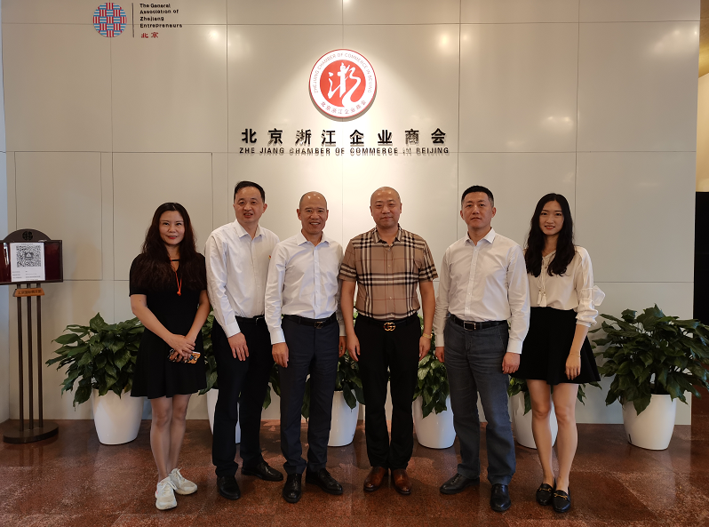 北京陕西企业商会副秘书长王溦(左一),中共北京市异地商会第四联合党委专职副书记毛明俊(左二),北京浙江企业商会秘书长肖民(左三),北京陕西企业商会常务副会长兼秘书长王俊科(右三),毕竟浙江企业商会常务副秘书长王方(右二),北京浙江企业商会党支部段跃(右一)