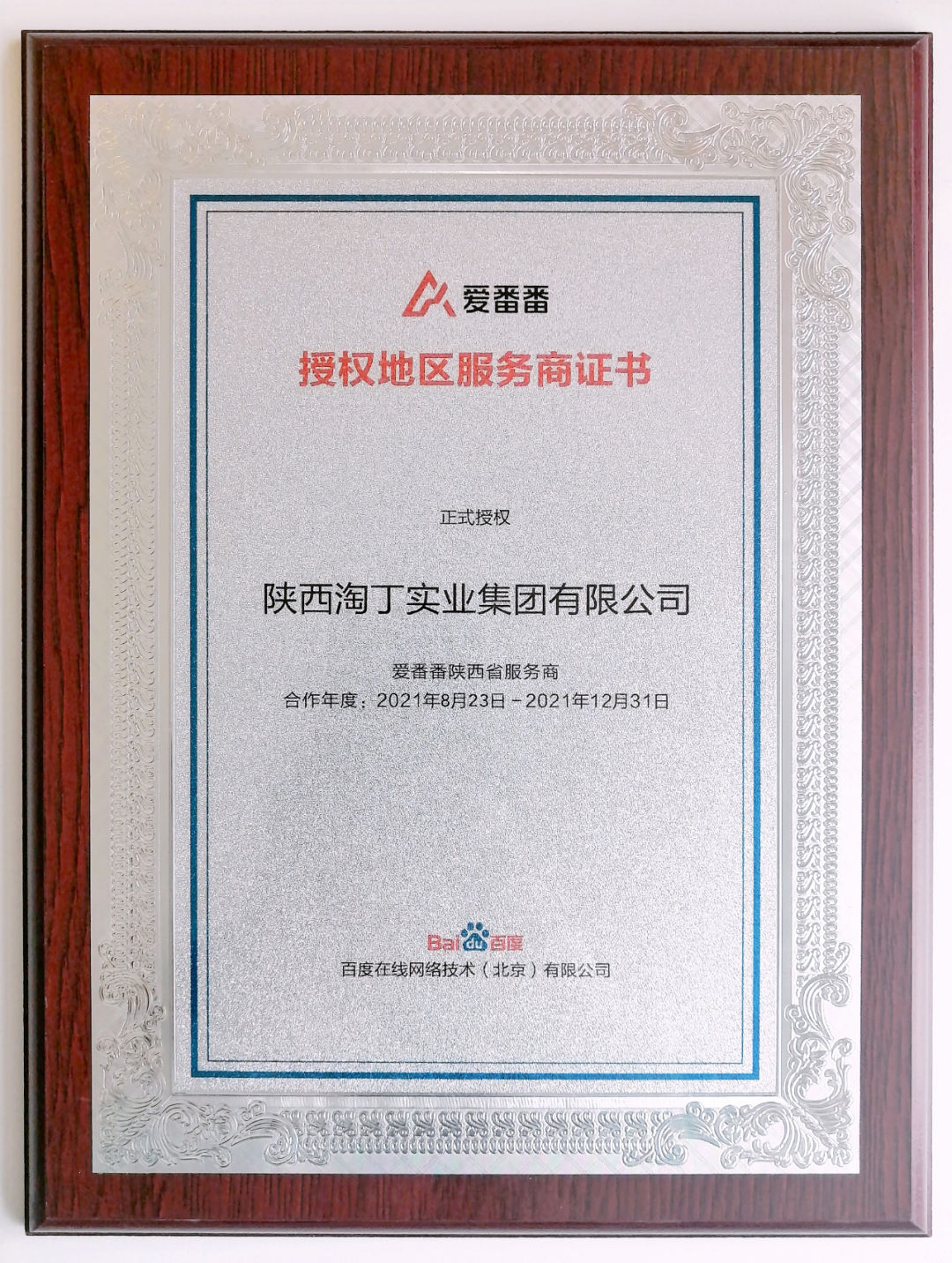 近日,陕西淘丁实业集团有限公司与百度公司强强联合,获“百度爱番番陕西省服务商”官方授权认证,正式成为陕西省“百度爱番番”产品官方认可的服务商。