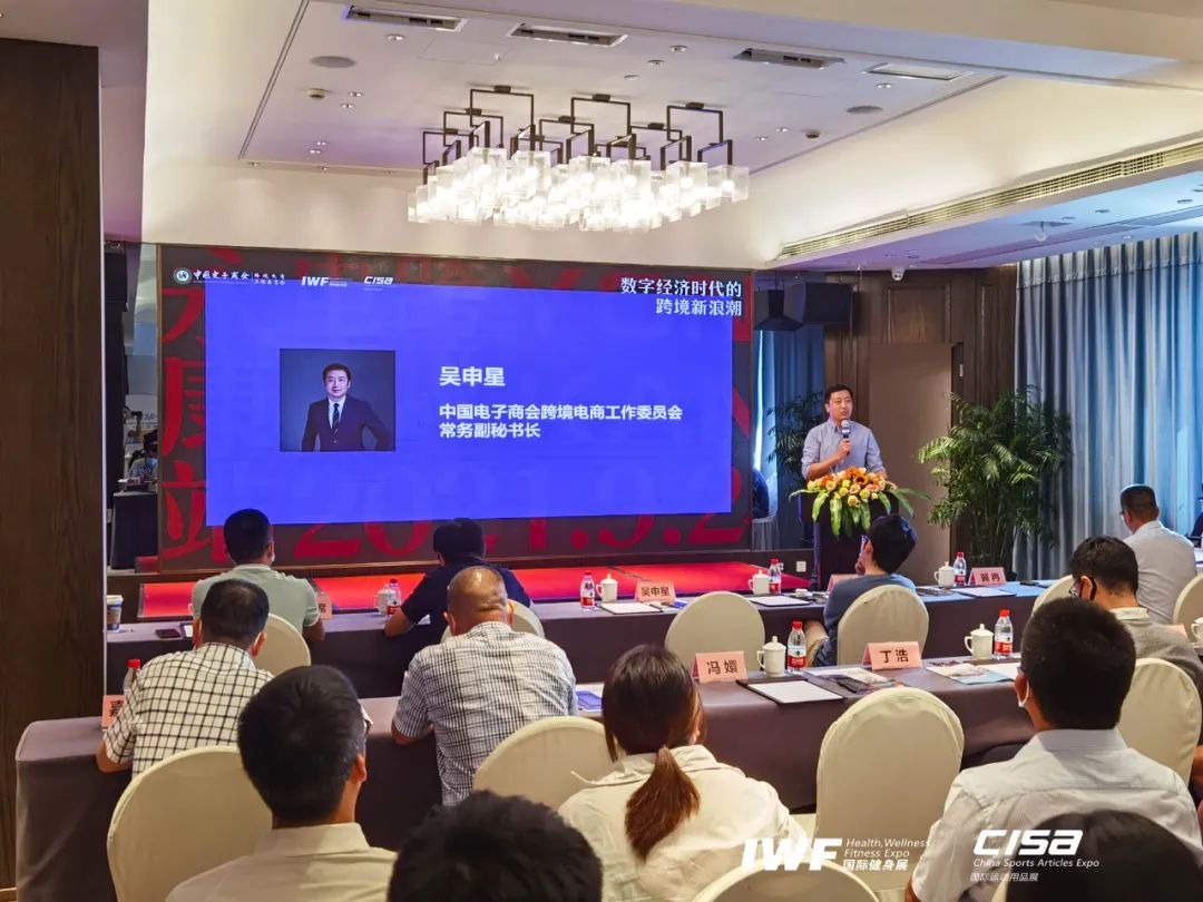 在开幕环节, 中国电子商会跨境电商工作委员会常务副秘书长吴申星和IWF国际健身展董事总经理彭冲代表主办致辞。会议由CISA中国(上海)国际运动科技博览会项目负责人肖亮主持。