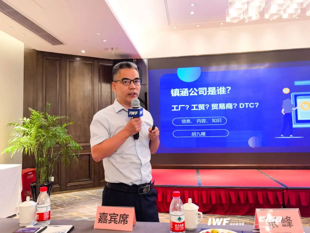随后,杭州镇涵运动器材有限公司总经理胡九曙就“跨境时代下体育用品新机遇”发表讲话,首先表示当前传统外贸行业内卷,越来越难做,而作为企业最重要的就是顺势而为,找到新的贸易模式,跟着风向走。关于入局跨境电商的思考,胡九曙详细地指出了入局前以及转型过程中需要考虑的因素,包括如何选择平台、平台规则、运营与人才等诸多问题。
