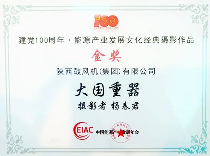 陕鼓集团杨春君“大国重器” 摄影作品被评为 “能源产业发展文化摄影作品金奖”