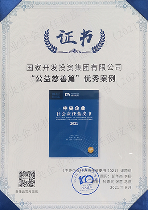 会议还发布了《中央企业社会责任蓝皮书(2021)》。蓝皮书围绕主业履责、科技创新、绿色低碳、乡村振兴、应急救援、公益慈善、责任管理等七个议题,收录了63家央企的优秀履责案例。国投报送的《“大爱若水 筑梦启航”,雅砻江志愿者在行动》案例获评《中央企业社会责任蓝皮书(2021)》“公益慈善”议题优秀案例。此外,会议还发布了首本《中央企业上市公司ESG蓝皮书(2021)》,公布了“央企ESG·先锋50指数”。