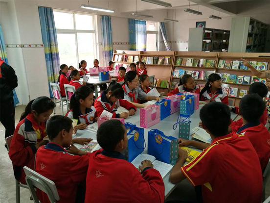 雅砻江水电志愿者在“二滩图书角”与小学生交流
