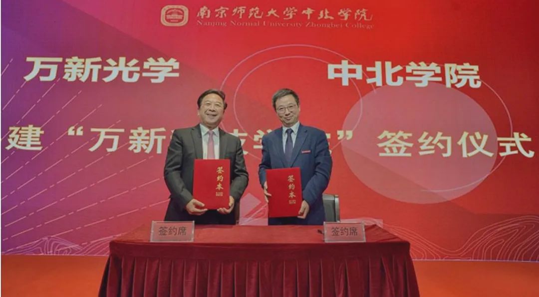 近年来,万新光学集团积极开展产教融合创新办学模式和实践,针对产业内学校眼视光学专业,强化校企合作。2011 年成立万新学苑以来,长期与南京医科大学、南京中医药大学、金陵科技学院、中山大学、西南大学、哈尔滨工业大学、上海大学、惠州卫生职业技术学院、镇江高等专科学校等多家高等院校,建立合作关系,开展企业互动、实施人才互培计划。公司借智创新,先后与中科院理化技术研究所、哈尔滨工业大学、中国医科大学、江苏大学等20 多家高校、科研院所建立产学研合作。同时,万新光学是 13 家高校指定的校外科研基地,重点开展新材料的应用研究与国产化开发、眼镜光学特性延伸研究与功能性视光学技术产品的研发、产品制造工艺的优化与自动化生产装备的研发。