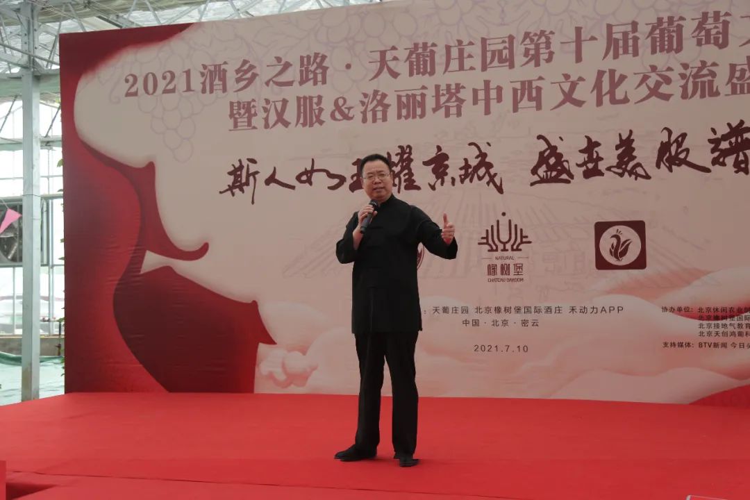 天葡庄园董事长孙宝胜发言介绍了本次活动的立意,表示将不遗余力整合相关资源,做强企业品牌,助力酒乡之路葡萄产业做强,打造区域品牌,促进乡村振兴。