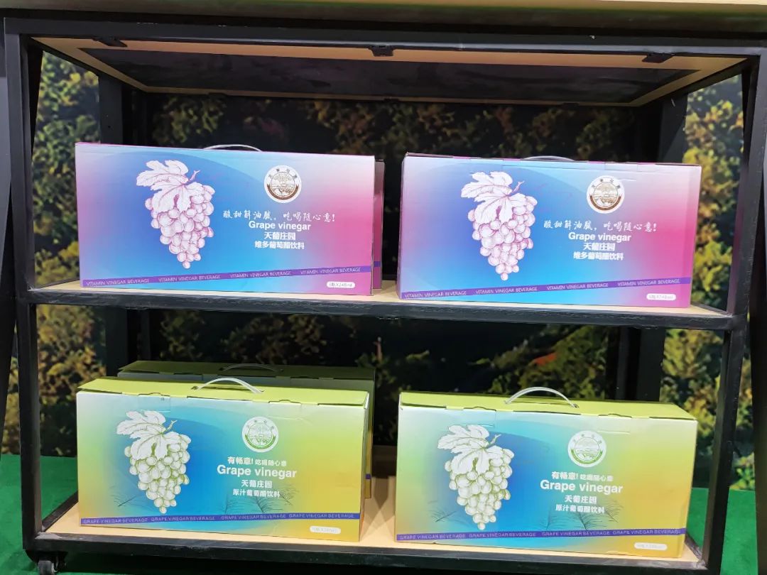 本次展会天葡庄园主要展出葡萄加工类产品,共有6款红酒、3款葡萄醋。展示葡萄领域健康饮品的创新研发成果。其中展出的维多葡萄醋、原汁葡萄醋、精品葡萄醋是由天葡庄园与中国食品发酵工业研究院合作研发的发酵健康饮品,聚焦当下低糖、去碳酸的饮品需求,定位开胃、助消化、解油腻等功能。