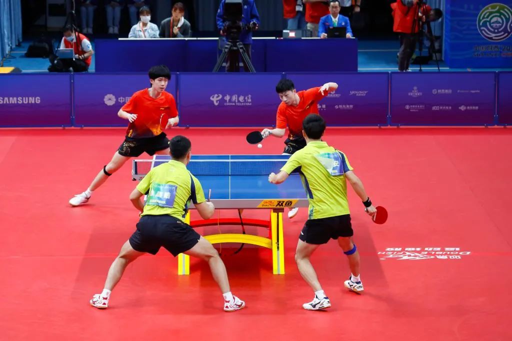 9月25日晚,十四运会“陕煤集团杯”乒乓球男子双打、女子单打决赛在陕西延安打响。北京队组合马龙/王楚钦以4比0战胜北京队组合闫安/徐晨皓,获得男子双打项目冠军。黑龙江队王曼昱以总分4比0击败河北队孙颖莎,夺得女子单打项目冠军。在延安大学体育中心,世界级高水平的乒乓球比赛让现场观众热情高涨,喝彩、加油声不断。