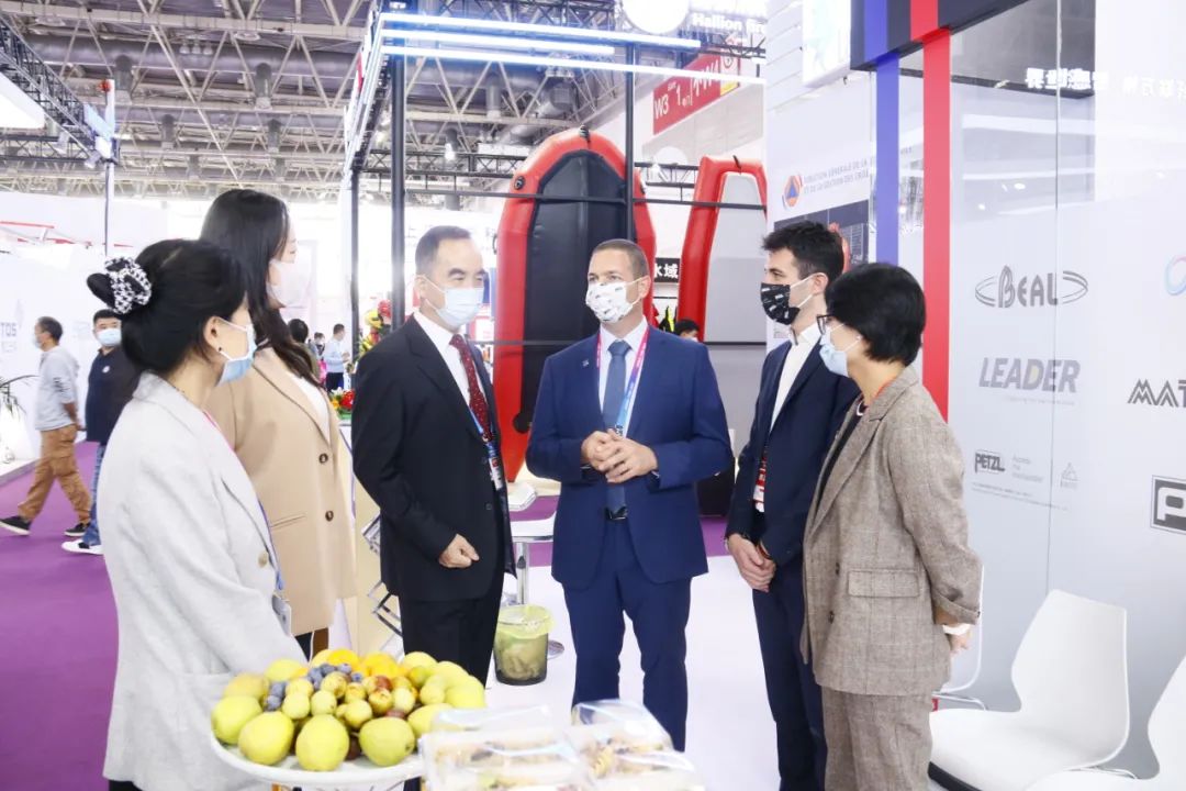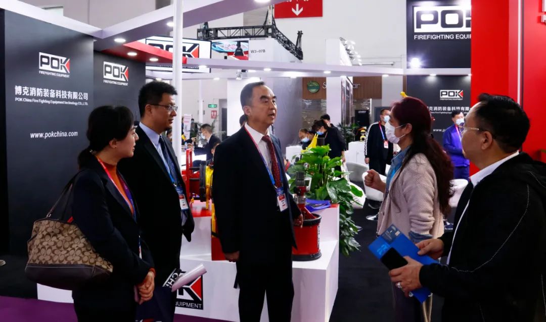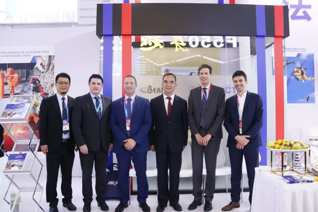 10月13日,中国消防协会会长陈伟明一行专门来到2021中国国际消防展法国驻华使馆展区,与法国驻华使馆商务投资处公使衔参赞范迪博、驻华使馆民事安全技术参赞莫兰、驻华使馆商务投资处参赞贺思贤就中法消防救援技术、消防装备、贸易往来等消防救援行业领域的相关问题进行深入交流。