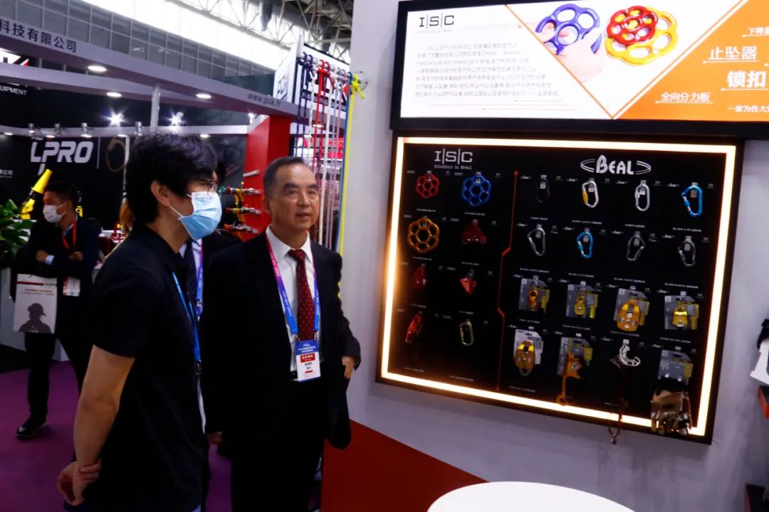 陈伟明一行在展区与消防救援装备企业相关工作人员进行交流