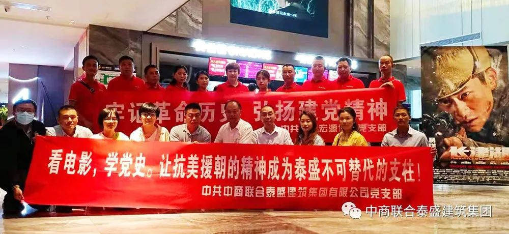 泰盛党建 TAI SHENG 为进一步加深、加固公司党员和入党积极分子的党史学习教育,深切缅怀革命先辈,弘扬爱国主义精神,激发全体党员和入党积极分子的爱国热情,10月16日下午1点半,中共中商联合泰盛建筑集团有限公司支部委员会联合中共海南宏源供水党支部党员、入党积极分子员观看革命题材电影《长津湖》。