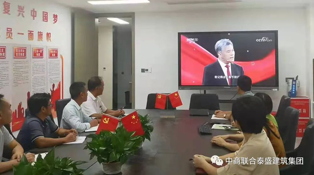 晚上8点,中共中商联合泰盛建筑集团有限公司支部委员会还组织党员和入党积极分子,在公司党支部活动室观看了由中央组织部、中央广播电视总台联合录制的《党课开讲啦》——党的光辉历程节目。此次主题党课以中国共产党的光辉发展历程为主线,展现了中国共产党取得的伟大成就,阐述了没有共产党就没有新中国的深刻共识,和中国共产党的领导是历史和中国人民的必然选择,教育引导广大党员深入学习党的历史,坚守初心使命,增强“四个意识”、坚定“四个自信”、坚决做到“两个维护”。