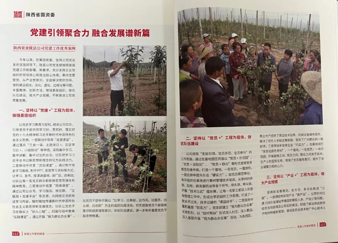 近日,在全省国资系统学习贯彻全国国企党建工作会议精神座谈会上,陕果陇县公司党建工作选送案例《党建引领聚合力 融合发展谱新篇》入选企业党建工作优秀案例选编。