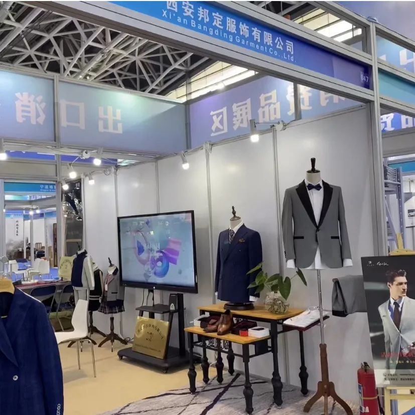 为展示服装定制领域的发展之迅速,同时加强行业间的交流与合作,宣传公司企业文化与公司品牌,西安邦定服饰以“邦交四海,定制天下”为主题参加了本次博览会。