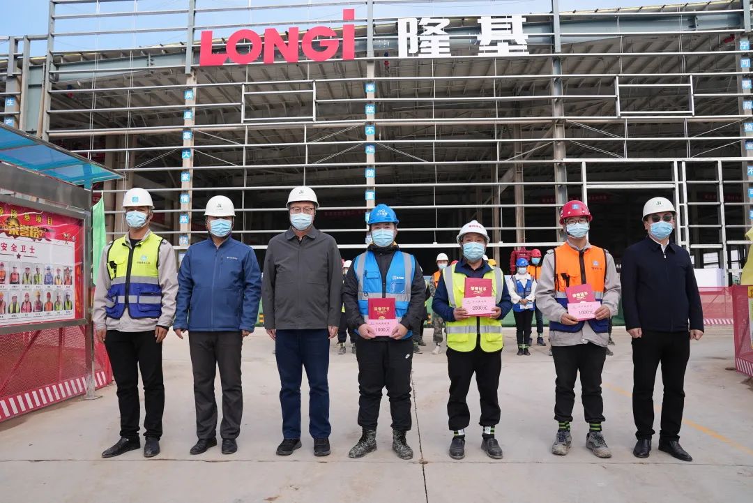 此次表彰活动对项目现场9月份表现优异的分包单位、管理人员及作业人员进行了表彰并颁奖,分别颁发了: “优秀分包”奖项1名 “优秀管理者”奖项2名 “安全卫士”奖项20名 此次表彰仪式起到了鼓励先进、激励全员的作用,进一步在隆基项目营造“安全生产,人人有责”的良好氛围,有助于全体项目建设人员在后续项目建设中奋勇争先、高质量推进项目建设,把安全工作抓得更牢、更实,为隆基项目建设构筑更加坚实的安全屏障。