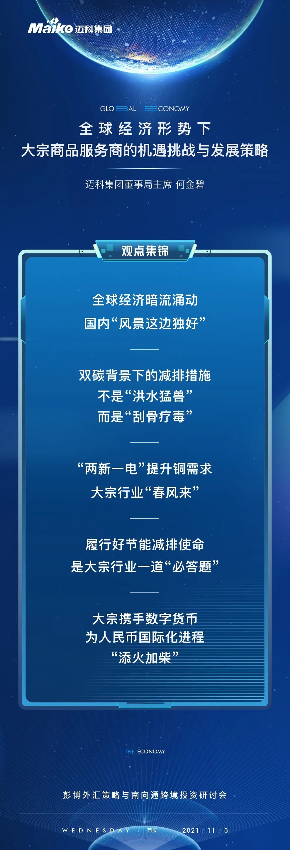 11月3日,“彭博外汇策略与南向通跨境投资研讨会”在西安举行。迈科集团董事局主席何金碧受邀参加,并发表主旨演讲。