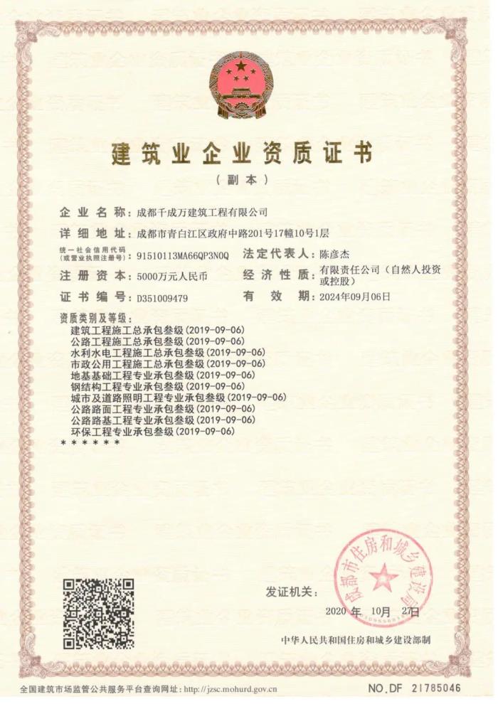 中企纳川(北京)建筑集团有限公司简称纳川集团,2009年由多位法人一起创办,总部位于中国北京,旗下有77家工程类公司,其中不乏上市企业。总资产达80多亿元,工程类资质100多项,是一家做工程资质加盟共享的企业,有成熟的资质共享模式。