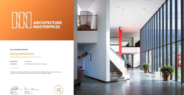 近日,2021年AMP美国建筑大师奖公布获奖结果,由中技集团饶承东团队创作的北京佳莲学校(北京四中国际课程佳莲校区)项目从全球数千份申报项目中脱颖而出,荣获荣誉奖,获得国际认可。