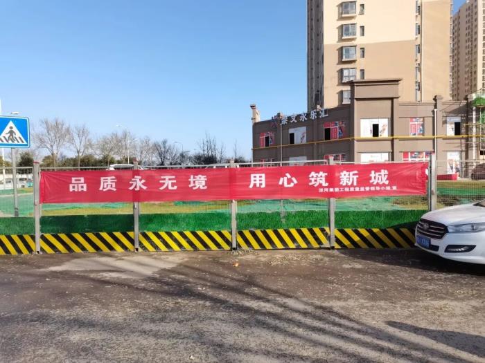 在施工现场悬挂“重视质量、追求质量、崇尚质量、关注质量”,“全面提高质量,推动科学发展”等宣传横幅和宣传标语,广泛普及质量知识,积极营造浓厚的活动氛围。