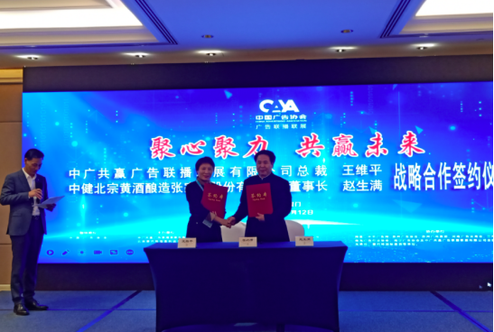 大会首先举行了中广联播与中健北宗黄酒酿造有限公司战略合作签约仪式,由中广联播总裁王维平、中健北宗黄酒酿造有限公司董事长完成签约。在未来北宗黄酒会借助中广联播强大的媒体矩阵完成全国市场的品牌宣传。
