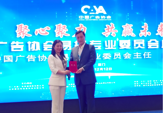 易货专业委员会主任赵一蒙发表了精彩的就职宣言,重点提出:在2022年建立7个大区、一个中国易货贸易国际交易中心,帮助全国广告公司完成2-5亿的易货贸易并实现不低于1亿元人民币的变现交易。她恳切的提出,希望全国各类别媒体多了解新易货模式,更多的加入到科学易货、合理易货中来,在经济形势严峻的情况下给广告企业多一条发展的道路。接下来易货专业委员会主任向秘书长周彬颁发了聘书。