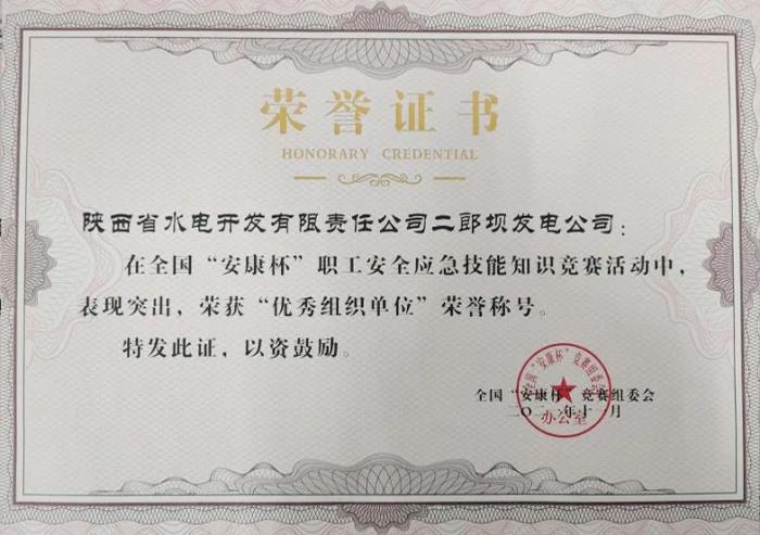 近日,全国“安康杯”2021年度职工安全应急技能知识竞赛落幕,集团公司下属水电二郎坝公司、秦龙电力麟北发电公司、西部证券在比赛中斩获殊荣,获得“优秀组织单位”称号。(王文静)