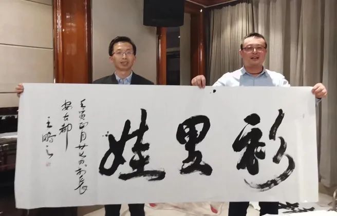 大会上,兰州大学兰州校友会副秘书长王鹏为邦定服饰挥毫泼墨,合影留恋。