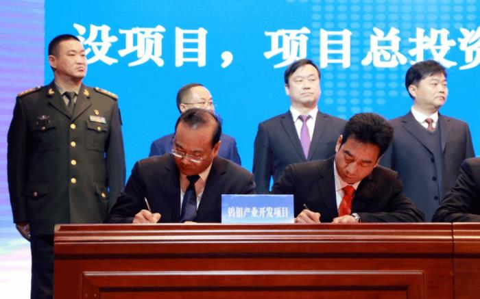 会上,鼎丰矿业公司被授予“县域经济发展突出贡献奖”,并签订钨钼产业开发项目合同。