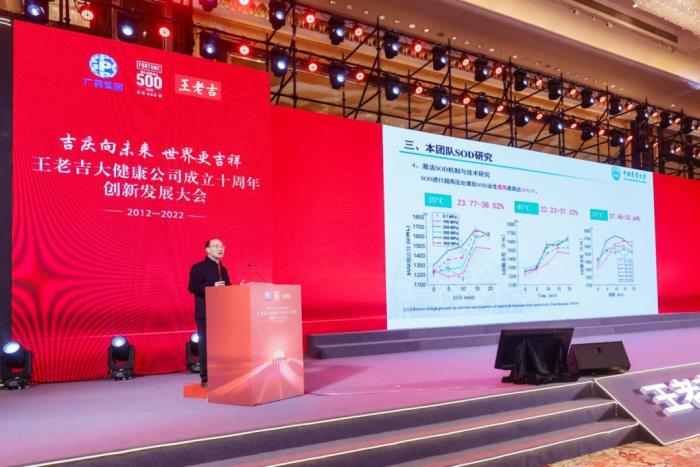 王老吉坚持以科技赋能乡村振兴事业。在本次十周年创新发展大会上,王老吉大健康公司联合中国农业大学发布了针对刺梨的最新科研成果,联合中国科学院发布关于荔枝的最新科研成果。 研究发现,刺梨中富含超氧化物歧化酶(SOD),活性高,具有保肝护肝、延缓衰老等作用,经高压处理可显著提高刺梨果汁SOD酶的活性及含量,而刺柠吉精制刺梨液中SOD酶的含量不少于2000U/ml,是人体很好的营养补充剂。 在针对荔枝的研究中,研究团队发现荔枝果肉中富含多种活性成分,其中,荔枝黄烷醇能有效改善皮肤微循环、清除黄褐斑,为多食荔枝可美容养颜提供了科学论据支持。