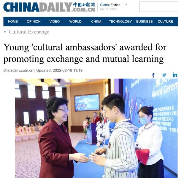 “文化小大使”活动有力推动了全球青少年对北京冬奥会和中华传统文化的认知,受到热烈欢迎。颁奖典礼后,媒体多次报道和转发获奖者感言。来自巴基斯坦的谢锐说,“文化小大使”不仅是一个称号,更是对我的激励。出生在西班牙的申晴说,自己身在海外,文化传播就在生活中的每个点滴。斯里兰卡的狄娜吉说,很高兴有机会了解其他国家青少年的想法和他们的文化背景。来自中国新疆的阿依曼、河北的刘博伟和湖北的张晓雅表示,作为“文化小大使”,开展中外文化交流、推动文化传承与创新,是我们的责任和使命,希望未来能够结识更多海内外志同道合的朋友,以青春的朝气和热情传播中国优秀文化、促进世界和平与友谊。
