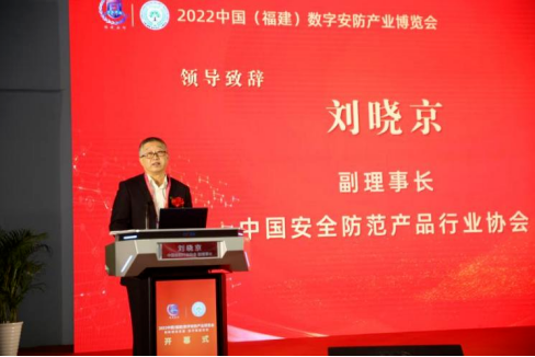 ▲中国安全防范产品行业协会刘晓京副理事长代表中国安防协会致辞