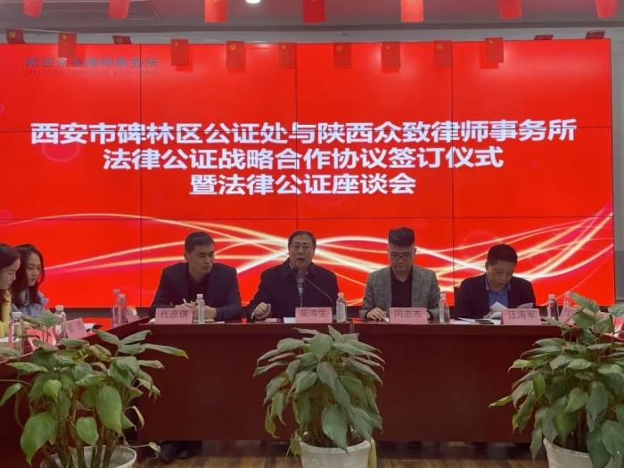 企迪网讯(编辑刘欣)2022年3月10日下午,为加强西安市碑林区公证处与陕西众致律师事务所律证合作、实现优势互补,提升服务效率,促进共同发展。 西安市碑林区公证处与陕西众致律师事务所联合召开了一场法律服务融合座谈会,暨碑林区公证处与陕西众致律师事务所签订战略合作协议。