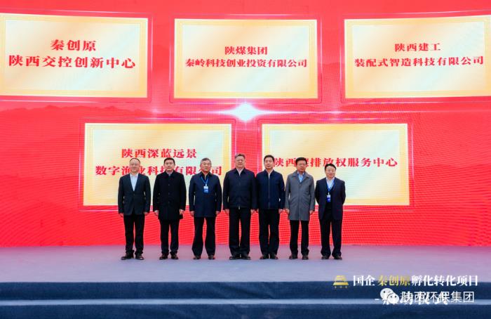 开工仪式前,省国资委召开国企秦创原孵化转化项目启动大会。会上,陕西环保集团陕西碳排放权服务中心正式揭牌。