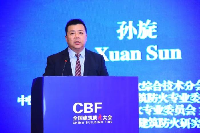 中国建筑学会建筑防火综合技术分会理事长、中国工程建设标准化协会建筑防火专业委员会主任委员、中国消防协会建筑防火专业委员会主任委员、中国建筑科学研究院建筑防火研究所所长孙旋作题为《城市更新与新能源防火》的主旨报告,分析既有建筑改造和新能源应用的背景、安全问题及未来的解决思路。