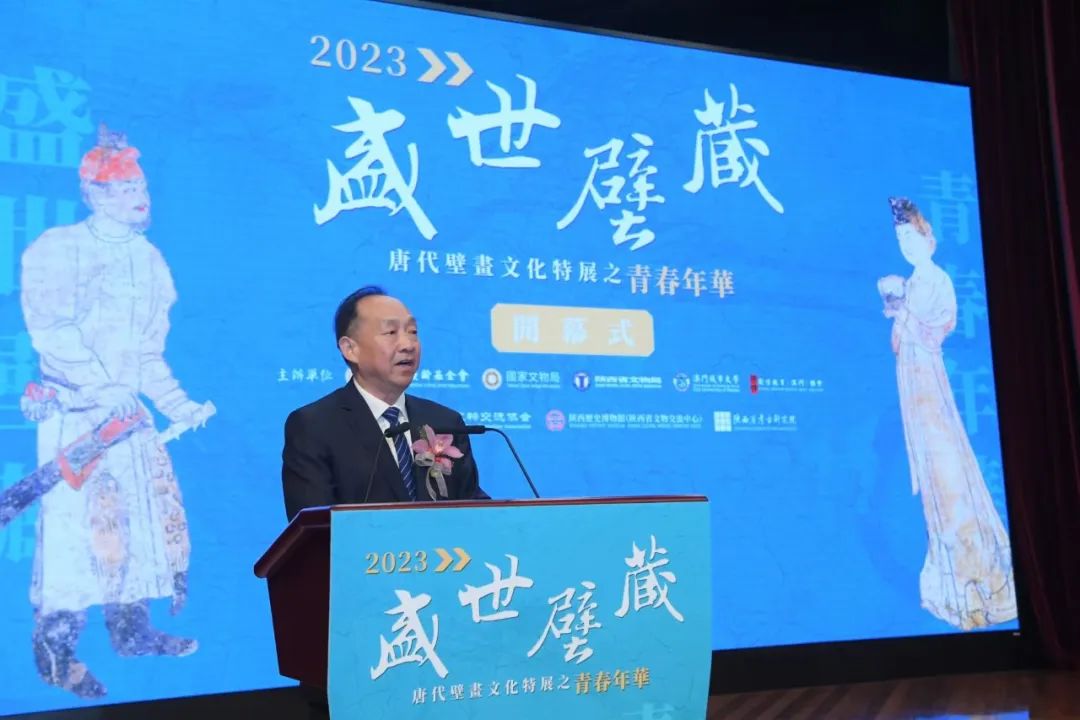 9月13日,由中国宋庆龄基金会、国家文物局、陕西省文物局、澳门城市大学、国情教育(澳门)协会共同主办的2023“盛世壁藏——唐代壁画文化特展”(以下简称“特展”)在澳门城市大学文化中心开幕。第十三届全国政协副主席、中国宋庆龄基金会主席李斌出席开幕式。