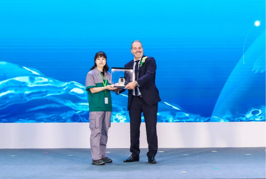 威乐集团高级副总裁、OEM战略业务单元负责人Michael Ranft先生登台为嘉宾分享了Wilo-Para家族的发展故事,随后一线女工黄雪梅将威乐常州工厂出品的第一台Wilo-Para高效屏蔽泵作为一份具有特殊意义的礼物敬献给Michael Ranft先生。他与多位嘉宾一起庆祝了威乐全球第3,000万台Wilo-Para家族高效循环泵的成功下线。