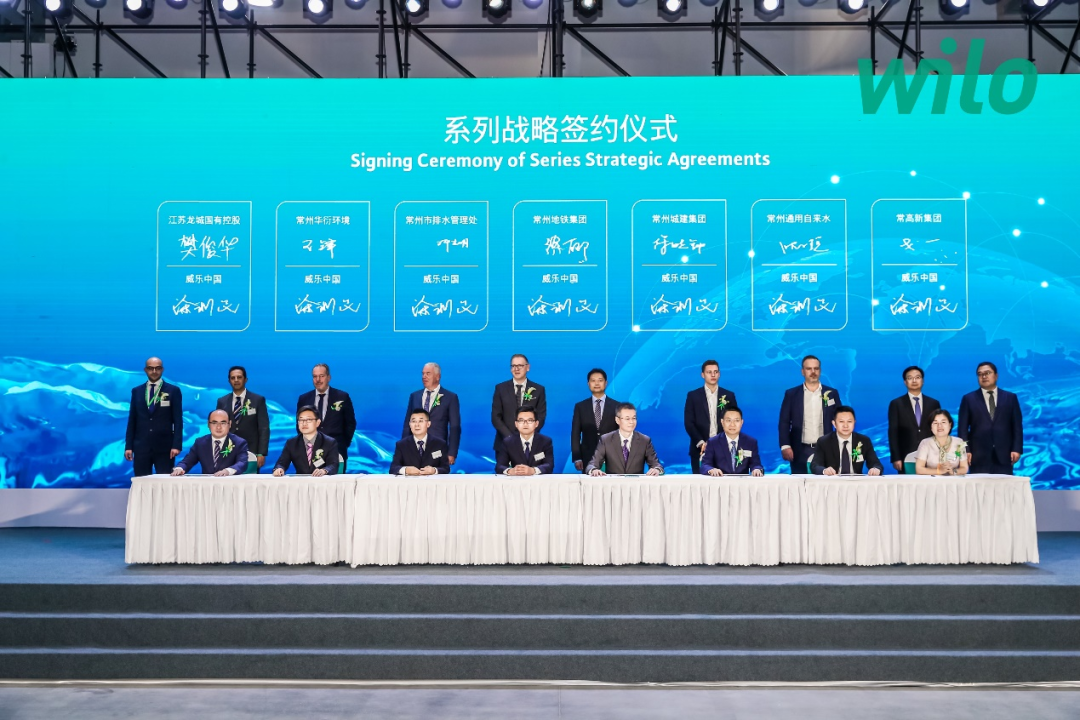 随后的系列战略合作签约环节,威乐先后与美的集团、格力集团、三花集团签署了战略合作备忘录,面向热泵及新能源行业深入合作、彼此赋能;天猫工业品事业部也特别为威乐在电商渠道的卓越表现进行了颁奖。最后,威乐与常州地铁集团有限公司、常州市城市建设(集团)有限公司、常州市排水管理处、常州通用自来水有限公司、常州华衍环境投资(江苏)有限公司、常州高铁新城投资建设发展有限公司以及江苏龙城国有控股集团有限公司共计7家常州本地大型企业签署了战略合作协议,并由政府、行业组织领导和威乐管理层代表一起进行了见证。