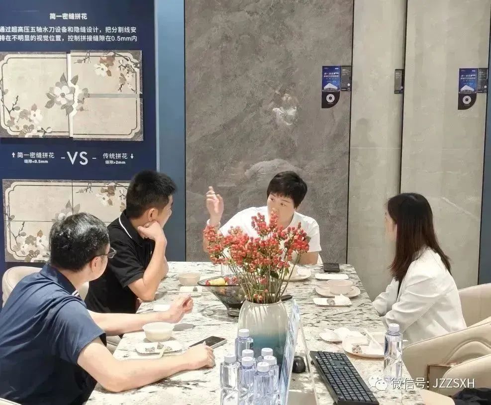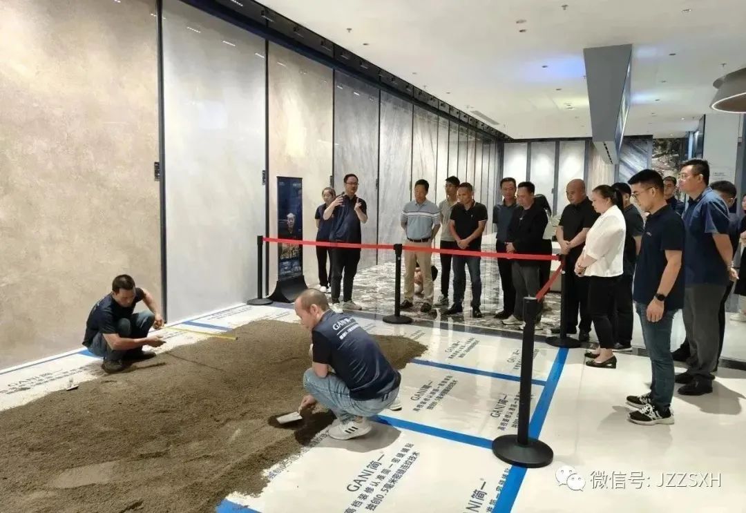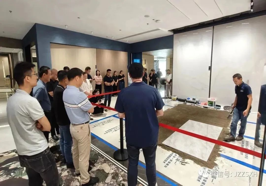 随后,在东莞市东居建材有限公司简一成品交付馆馆长程锐强的详细讲解下,大家现场感受简一大理石瓷砖成品交付密缝铺贴技术,领略简一工匠精神。