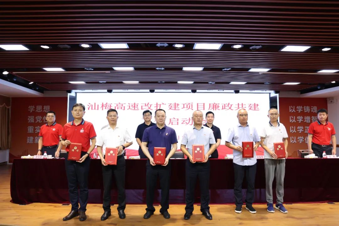 启动会上,项目管理处与参建单位签订了《汕梅高速改扩建项目廉政共建工作方案》及《汕梅高速改扩建项目廉洁从业承诺书》,廉政共建各方代表进行了表态发言,华正亭等为项目廉政监督员颁发聘任书。