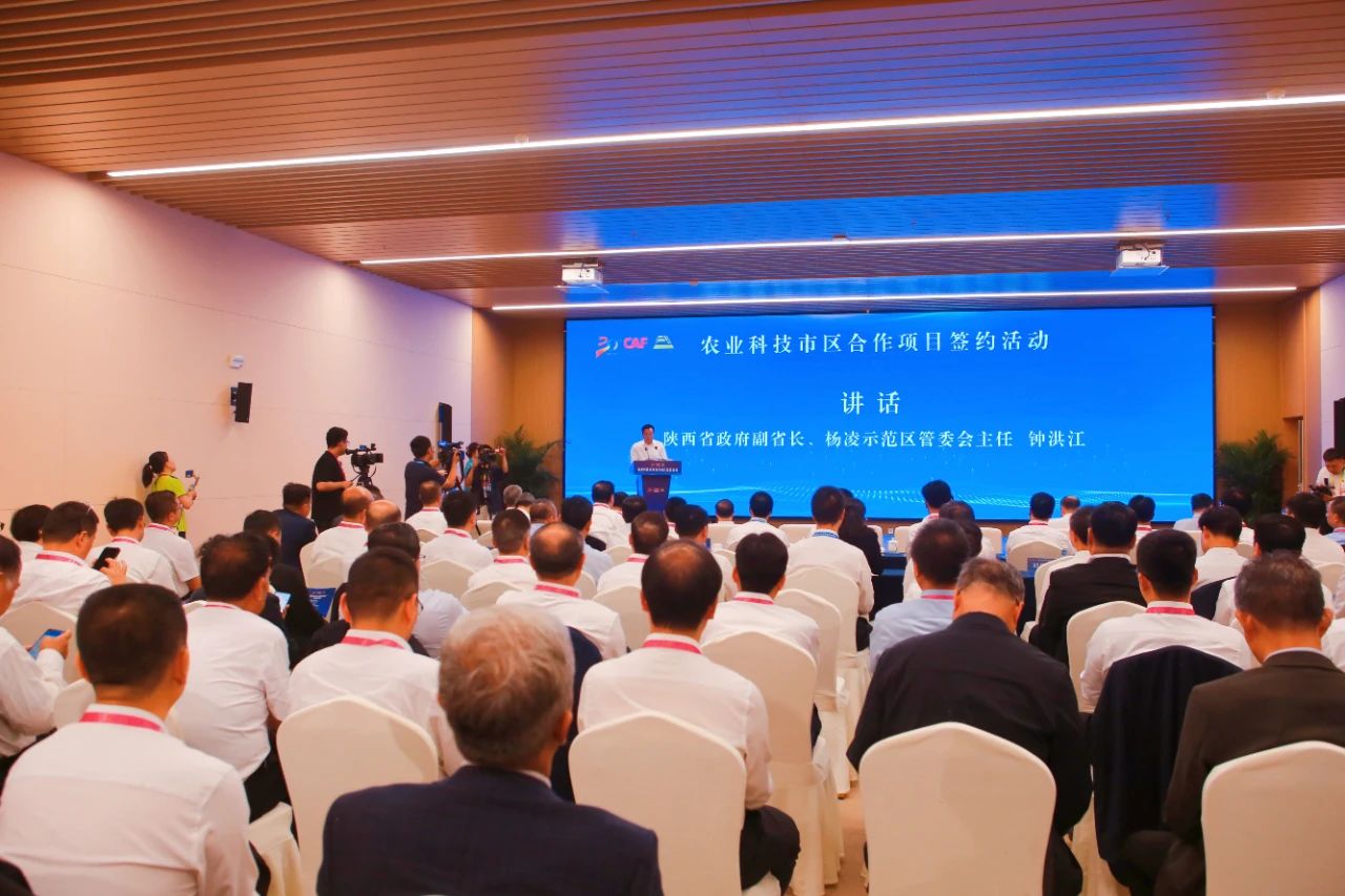 9月19日,第30届杨凌农高会农业科技市区合作项目签约活动举行。陕西省副省长、杨凌示范区管委会主任钟洪江讲话,并为“洛川苹果”等5个“上合组织农业基地优选出口基地”授牌。陕西省政府副秘书长雷江声主持。陕西省农业农村厅副厅长任步学,陕西省科工委委员、省科技厅二级巡视员郭杰,安康市委书记武文罡,渭南市委副书记、市长陈晓勇出席。杨凌示范区党工委副书记、管委会常务副主任史高领介绍市区合作进展情况,并为秦创原农业创新驱动平台试验区授牌。