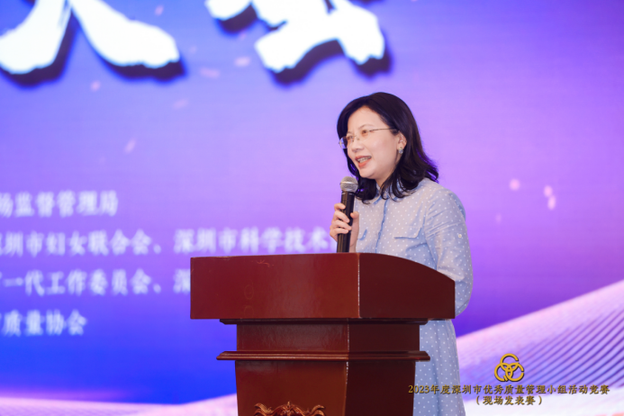 深圳市总工会基层组织建设和经济工作部二级调研员许小妍同志代表主办单位在总结会上向参赛的企业代表、QC小组代表们表示祝贺,祝贺大家在此次大赛中取得优胜成绩。她讲到:中共中央、国务院《质量强国建设纲要》和全省高质量发展大会中,提出支持群团组织、一线班组开展质量改进、质量创新、劳动技能竞赛等群众性质量活动。QC小组活动凝聚了一线职工群众的智慧和力量,是广大职工积极投身家园建设、企业发展以及高度主人翁责任感的直接体现,展示了他们饱满的工作热情和精神面貌。QC小组活动不仅是广大职工展示技术创新的重要阵地,而且已经发展成为我市质量改进、技术创新、产业升级的学习交流平台。
