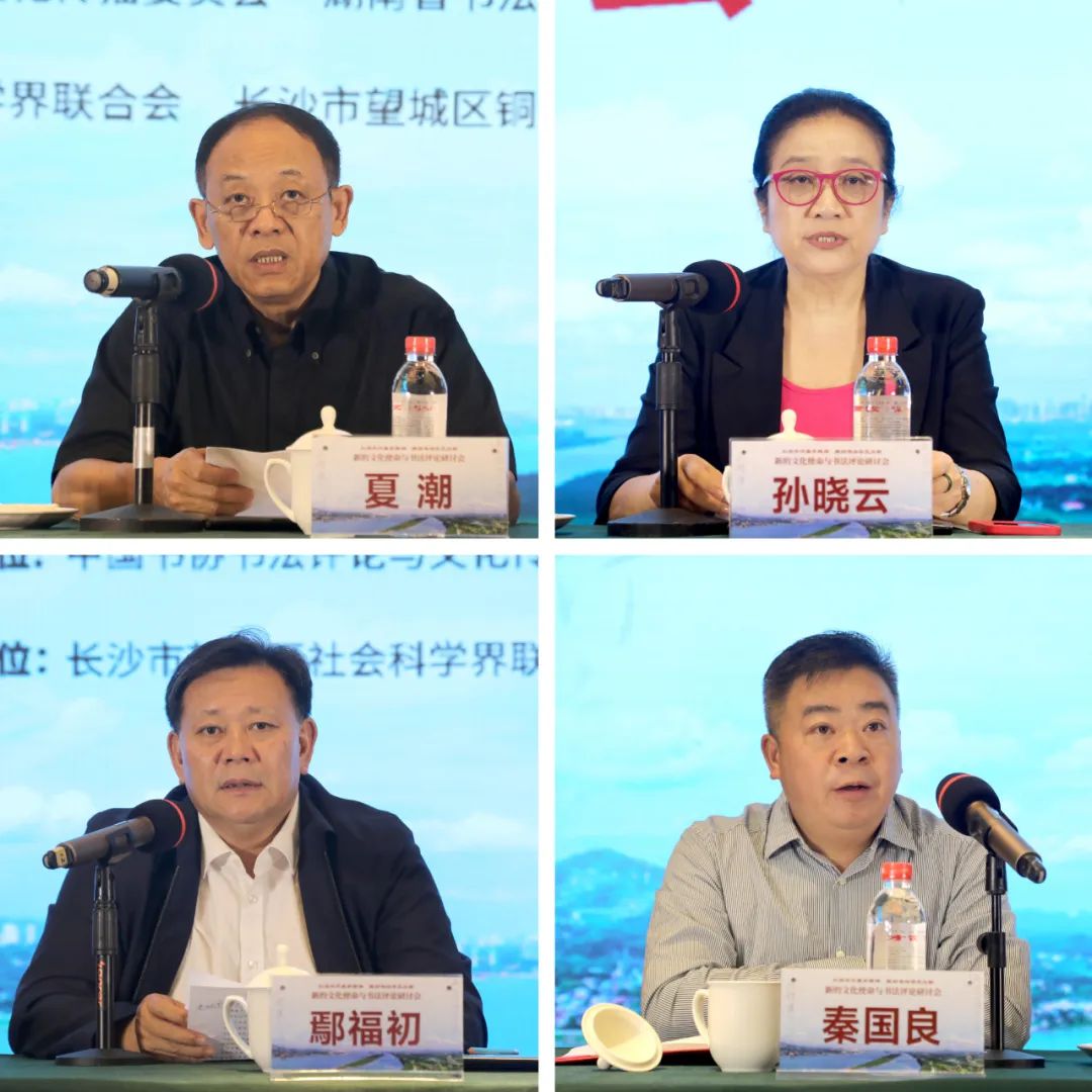 中国文艺评论家协会主席夏潮,中国书法家协会主席孙晓云,中国书协副主席、中国评协副主席、首都师范大学教授叶培贵,长沙市望城区委书记秦国良,中国评协理事、北京大学艺术学院院长彭锋,中国人民大学国学院教授袁济喜,中国传媒大学艺术研究院院长、教授王廷信,以及中国书协书法评论与文化传播委员会等方面委员、专家参加研讨会。