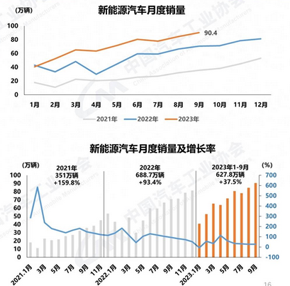 在“双碳”目标的指引下,新能源汽车行业快速发展。今年以来,我国新能源汽车的发展势头依然强劲。2023年1月至9月,新能源汽车产销量分别达到631.3万辆和627.8万辆,同比分别增长33.7%和37.5%,市场占有率达到29.8%。