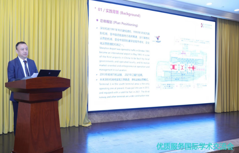 在专家面对面--企业服务质量咨询与提升环节,深圳机场副总经理李健作了题为“打造最具科技体验感人文机场”的发言,向与会代表介绍了深圳人文机场建设的规划思路、建设重点、建设成效等内容。他重点分享了深圳机场主动适应中外旅客出行新趋势和疫情后旅客出行新变化,编制并发布《民用机场旅客无接触服务》团体标准,为旅客提供全流程“无纸化”便捷通关、“无接触服务”等智慧出行的经验和做法,受到中外来宾一致好评。