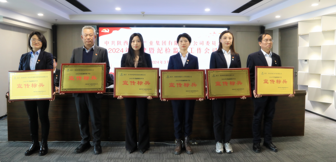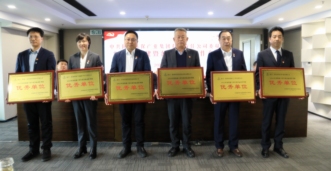 会议对荣获2023年度党建工作年度目标责任考核“优秀单位”的中圣公司、水环境公司、园区开发公司、油气公司、三秦环保股份公司、鼎丰矿业公司和荣获陕西环保集团“文明单位(标兵)”的:三秦环保股份公司、榆林分公司、园区开发公司、新能源公司、德启公司、朗新公司,荣获2023年度“学习强国”平台“学习标兵”称号的延安分公司、水环境公司、油气公司、榆林分公司、鼎丰矿业公司、生物科技公司,荣获2023年度融媒体平台“宣传标兵”称号的:中圣公司、油气公司、水环境公司、绿色能源公司、监测公司、鼎丰矿业公司进行了表彰。